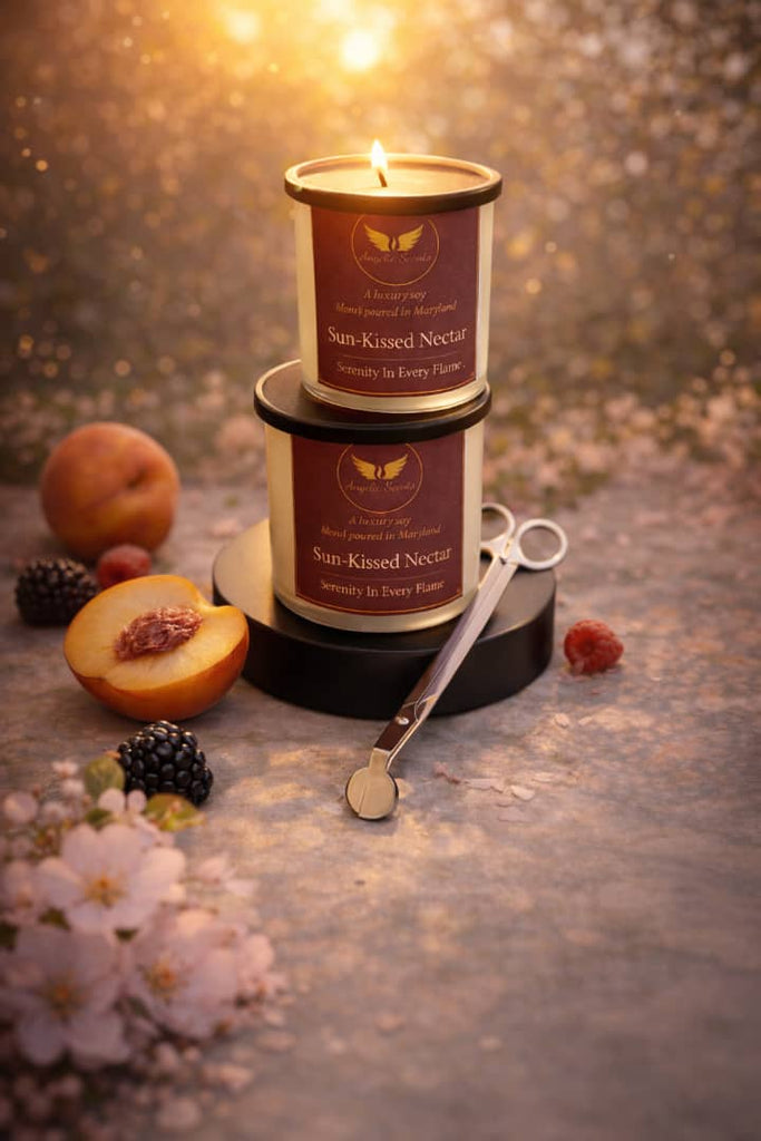 Hand-poured 10 oz soy wax candle available in square or round designs, crafted for a clean, even burn and a smooth, pleasant scent throw. Candle color may vary slightly.